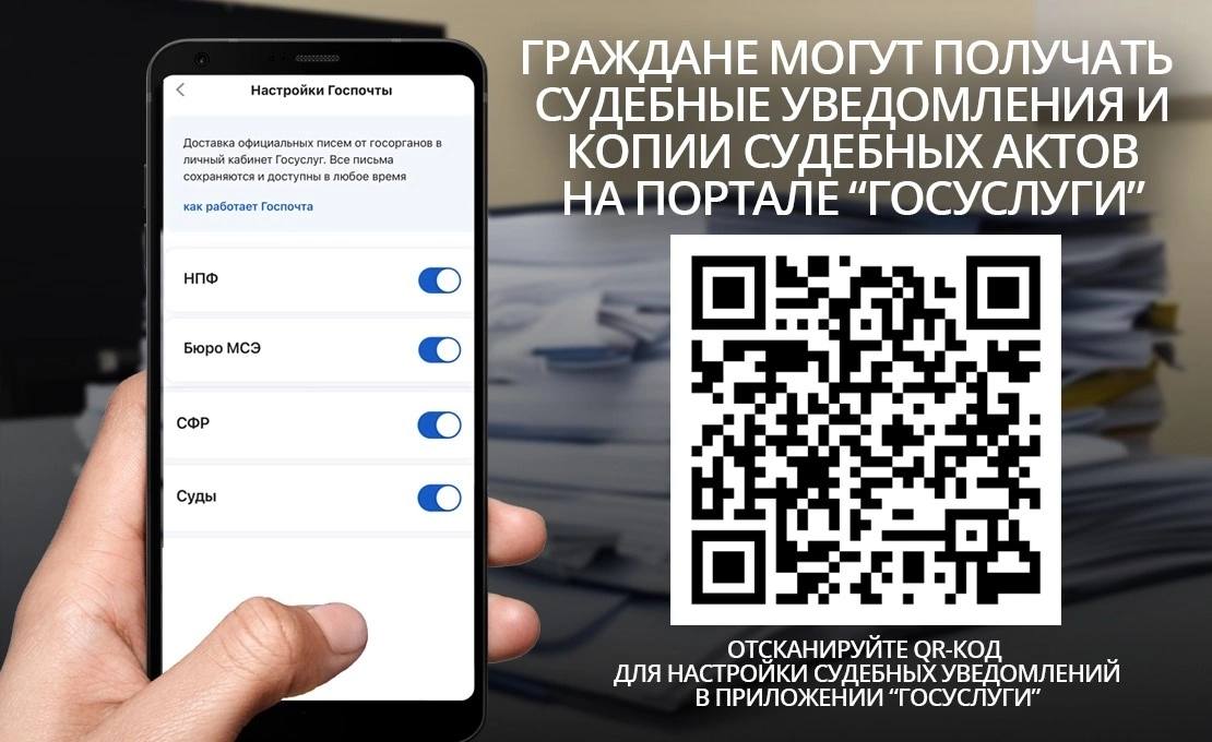Получать судебные уведомления в рамках рассмотрения гражданских и административных дел в судах стало максимально просто и удобно посредством Единого портала Госуслуг. Это позволяет сторонам судебного процесса моментально получать информацию о дате и времени судебного заседания. Электронное уведомление придет в личный кабинет на Госуслугах сразу после отправки судом. Кроме того, у гражданина, не подавшего заявлений в суд, имеется возможность оперативно узнать, что к нему появились претензии от каких-либо лиц, обратившихся в судебные органы. Но не всегда сообщения, направленные судами через Госуслуги, доходят до адресата, потому что, если гражданин не изъявил согласие на получение сообщений, судам приходит отказ. Для того чтобы получать судебные уведомления на Госуслугах, необходимо в своем личном кабинете Госуслуг в разделе «Настройки Госпочты» дать согласие на получение судебных уведомлений (передвинуть бегунок вправо, в строке «Суды»). Преимущества получения документов с портала Госуслуг: - моментальная доставка в личный кабинет; - судебная корреспонденция не теряется, она всегда доступна в электронной форме; - нет необходимости получать корреспонденцию в бумажном виде в отделении Почты России; - лицу, участвующему в деле, будет доставлено письмо в электронном виде даже при смене места жительства. ![]() |